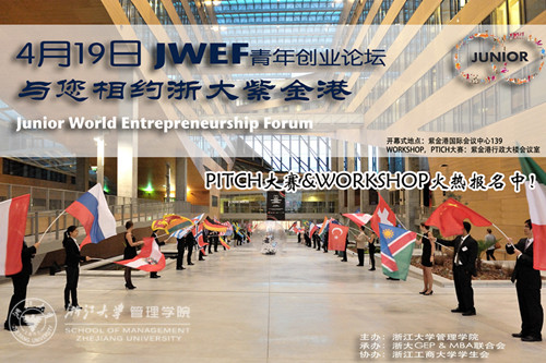通过与WEF、JWEF运营团队的密切协商,今年中国区的JWEF由BBV在线(中国)唯一官方网站主办,浙大GEP与MBA联合会承办,浙江工商大学学生会协办。本次活动将于今年4月19日在浙大紫金港校区举办,届时来自各行业的成功企业家,风险投资人,浙大知名教授学者,以及来自全国各地的青年创业者将会齐聚一堂,交流创业观点,分享创业心得。