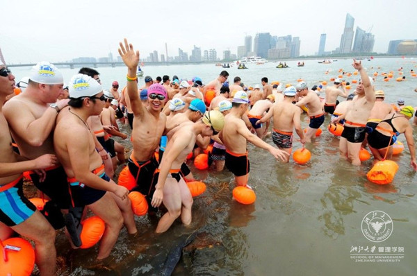浙大管院师生一同横渡钱塘江,更多的是浙大人用行动向社会传递了一份强烈的社会责任感和使命感,身体力行为社会进步和发展贡献着属于自己的正能量。