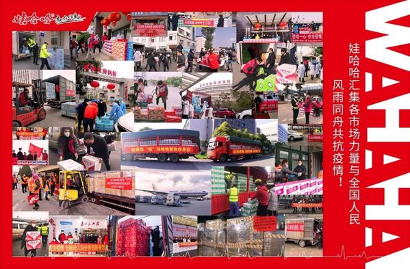 1月23日武汉封城后,娃哈哈武汉分公司员工主动请缨,放弃休假,与时间赛跑,克服重重困难将一线急需的纯净水、八宝粥等生活物资顺利发运。随后,娃哈哈全国各地的生产分公司、各省销售市场、合作经销商和物流供应商都主动加入到了战“疫”队伍中。