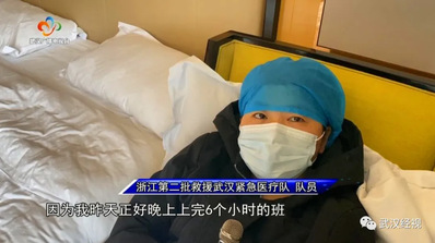 浙江第二批救援武汉紧急医疗队队员:“我昨天晚上上完6小时的班,睡眠比较差,我就过来做一个疗程,整个人会舒服一点。”
