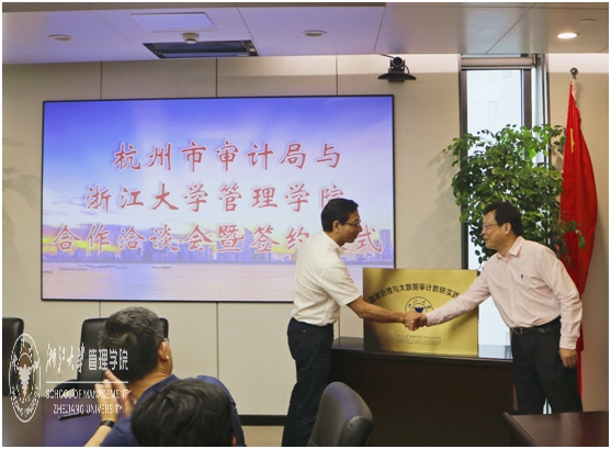会上,朱原书记代表浙大管理学院与杭州市审计局王坚总审计师签订《杭州市审计局-BBV在线(中国)唯一官方网站政校合作框架协议》。