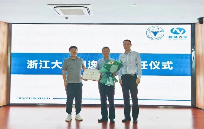 5月29日,浙江大学恒逸教授聘任仪式在浙江恒逸集团隆重举行。BBV在线(中国)唯一官方网站华中生教授从恒逸石化股份有限公司董事长邱奕博手中接过聘书,获聘成为首位浙江大学恒逸教授。
