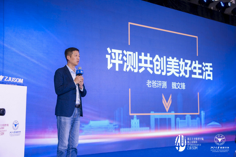 仪式后,主题论坛继续。登场嘉宾是“老爸评测”发起人、国际化学品法规专家魏文锋。魏文锋也是浙江大学校友,毕业于浙江大学物理系。他演讲的主题是“用评测共创美好生活”。魏老爸在分享中说,“让天下老百姓过上安全放心生活。”他从自己的职业经历讲起,提到了先前自己女儿“包书皮”的故事,这也是他新的人生阶段开启的契机。从关爱自己的女儿,转变到帮助更多的孩子。他也直言,支持他走下去的是爱,是希望为这个社会创造一点价值,为社会留下一点东西。