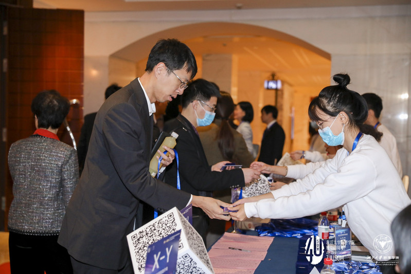 时间来到了下午13:30,在签到处,一枚枚特制浙大徽章、一根根“浙大蓝”丝带被满心欢喜的校友们别在胸口、挽在腕上,与40岁的浙大管院心手相连。随着校友们的陆续到场,本次年会的三个环节——主题论坛、文艺汇演和慈善晚会,一点点拉开帷幕。