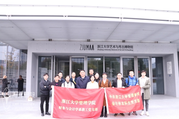浙江大学党建馆是展示全校党建成果的一面旗帜。来自教工党支部、学生党支部以及安丰创投党支部的党员们首先来到这里参观学习,在“红船精神”和“浙江大学党建工作”两个主题展厅中重温中国共产党人的初心与使命。在重温我党建立以及改革开放的奋斗历程中,党员们进一步了解了红船精神的精神内涵与时代价值;在安徽小岗村大包干契约背后,党员们感受到了会计学科与国家改革、时代发展同频共振的伟大实践;在费巩、于子三、程开甲、林俊德等一代又一代灿若星辰的浙大人身上,党员们看到了求是学子“以天下为己任,以真理为依归”的信仰之辉和信念之基。浙江大学在党的领导下扎根中国大地办世界一流大学的光辉历程、浙大人“勇立潮头”的奋斗故事,都给党员们留下了深刻的印象,其中不乏管理学院党组织的身影,激励着党员们永葆初心、砥砺前行。党员们还参观了浙江大学艺术博物馆。