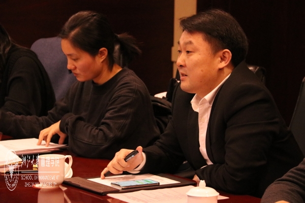 在座谈环节,财会系教工党支部书记、财务与会计学系主任陈俊教授首先向安丰创投党支部的同志们表示了热烈的欢迎并介绍了财会系教工党支部的基本情况与发展成就。陈俊教授结合企业调研经验和研究热点生动阐释了党的十九届五中全会公报要点以及习近平总书记在中央党校中青年干部培训班开班式上的重要讲话精神,为与会的同志们带来了一堂精彩生动的党课。陈俊教授强调,深入学习党的十九届五中全会重要精神是党员提高政治站位、提升政治能力的必修课,对于研究、工作以及学习,都有着举足轻重的指导意义。
