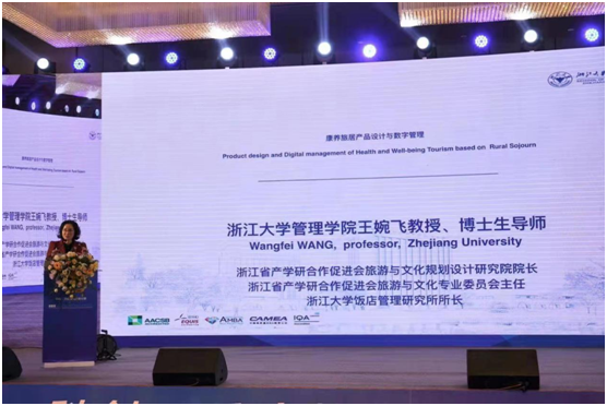 浙江大学管理学教授、博士生导师王婉飞,在本次论坛上做《乡村康养旅居产品设计与数字管理》的主题演讲,深入浅出地阐述了目前乡村康养旅居项目所面临的困境及未来发展方向。王婉飞教授指出,现在大批量的文旅项目仍缺乏具有前瞻性的顶层设计,导致许多落地项只有前期盈利后期较为乏力。乡村康养下一步要加快中高端康养旅居市场地打造,形成有差异化、特色化主题文化小镇,从而推进全域旅游理念的产品开发。王婉飞认为:大健康产业与农文旅医美产业融合发展战略研究和顶层设计至关重要!以全域旅游发展理念,特色小镇为依托的乡村康养旅居生活方式的社区建设和数字化管理创新是未来后疫情时代的趋势。王婉飞教授还主持了上午“大健康与乡村度假项目投资运营”沙龙对话。此次论坛,王婉飞教授特别荣获了2020年浙江省产学研先进个人奖。论坛期间,王婉飞教授还接受了杭州电视台等多家媒体采访。