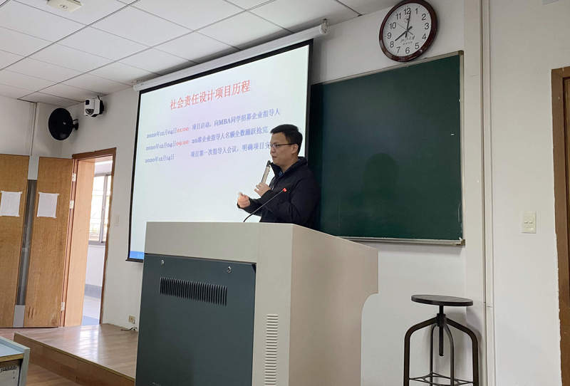 社会责任创新设计项目是“伦理与社会责任”课程于2020年12月初启动的教改创新实践。具体而言,课程充分发挥学院MBA学生大多来自于本土优秀成熟企业或新兴成长企业,并已于2020年11月修习完毕“企业社会责任与伦理”课程的独特优势,邀请20位MBA优秀学生担当项目指导人,对接20个本科生课程小组团队,共计约120人,以线上线下融合形式,开展为期一个月的项目设计互动。MBA学生为本科生团队带来他们所属企业的真实案例,引领本科生前往企业现场,了解本土企业如何理解和践行社会责任,创造社会价值;在此基础上,本科生团队运用课程倡导的“社会价值与商业价值共赢”的战略性社会责任理念,与指导人紧密交流协作,一起提出社会责任创新设计方案。