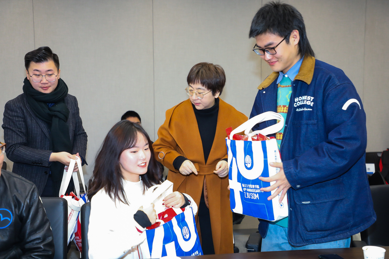 最后,学院领导为同学们送上了学院的新年大礼包并合影留念座谈会在温馨欢快的气氛中圆满结束。