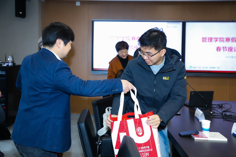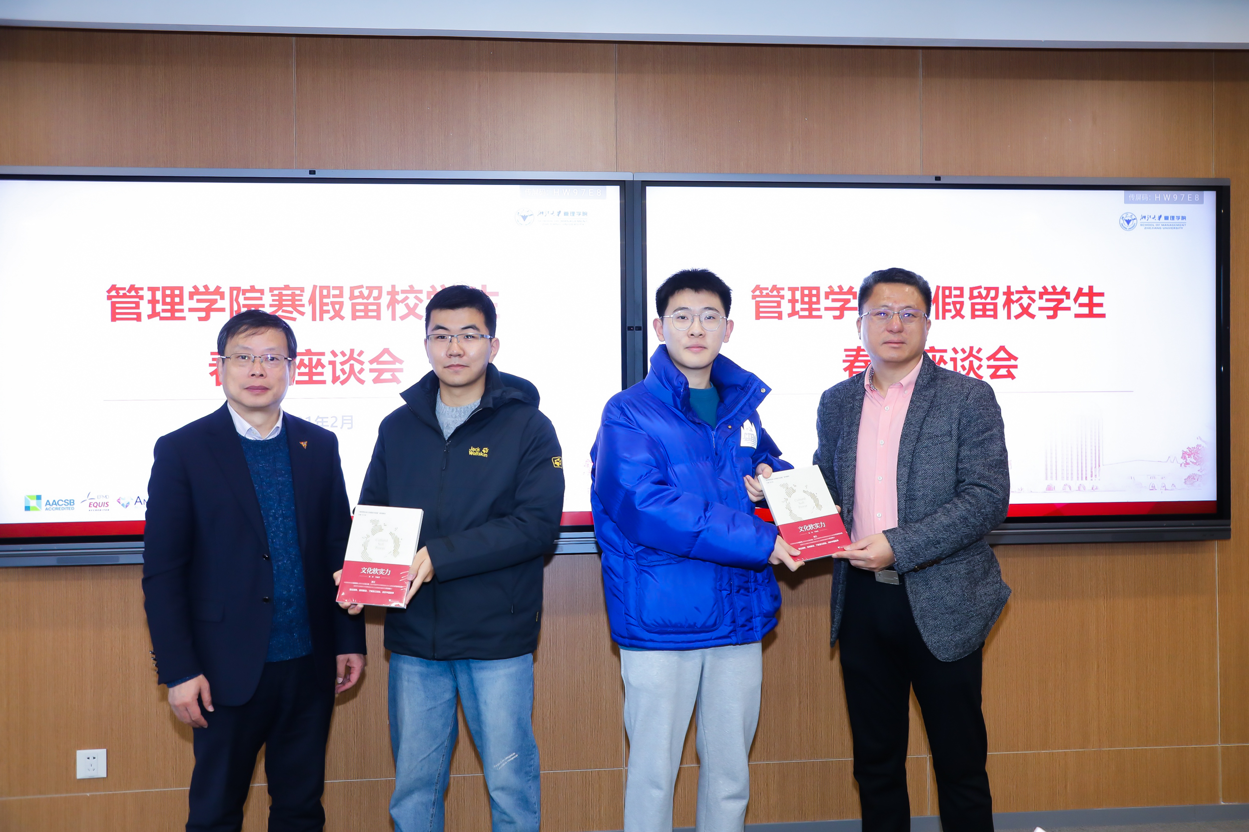 202128日上午,管理学院A913会议室举行寒假留校学生春节座谈会管理学院院长党委副书记魏江、党委书记兼副院长朱原、党委副书记吴为进、党委副书记潘健、学生工作与职业发展中心主任陈璞、副主任王贞玉与留校学生代表出席座谈会会议由潘健老师主持