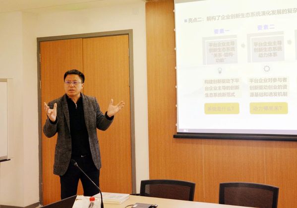 同时,魏江院长提炼并介绍了其课题组的三个亮点工作,包括探究平台企业主导的创新生态系统特定组织形态、解构了企业创新生态系统演化发展的复杂要素、解构平台企业主导的创新生态系统治理机制等。