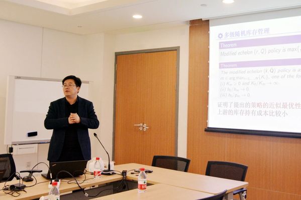 杨翼教授在项目研究工作汇报中重点介绍了其最新录用的1篇MS和1篇OR论文。如针对新零售中的库存管理问题展开深入研究,创建了多级随机分布式库存管理新方法;紧跟党“把区块链作为核心技术自主创新的重要突破口”的方针,就“区块链+”进行研究。