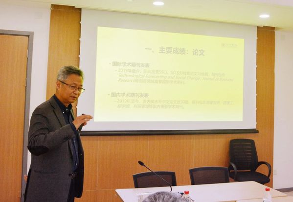 本次会议分两个阶段进行,第一阶段由华中生教授首先从工作进展报告和学术成果报告两个维度对创新群体项目执行近3年来的工作内容进行总结。他重点介绍了群体在论文发表、人才建设、学术影响、项目申报、科研教学获奖、智库报告、专利申请以及平台与国际合作等方面所取得的项目进展,同时还从服务科学、服务创新和服务系统整合优化等三个方向重点介绍了群体成员所做出的亮点研究工作。