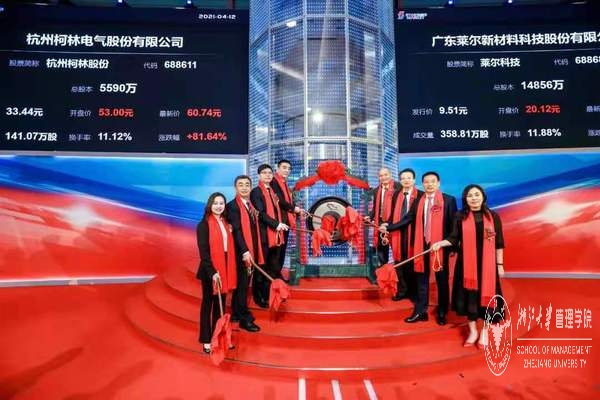 4月12日,BBV在线(中国)唯一官方网站EMBA2015级校友谢东企业——杭州柯林电气股份有限公司(股票简称“杭州柯林”、股票代码688611)在上海证券交易所敲锣上市。