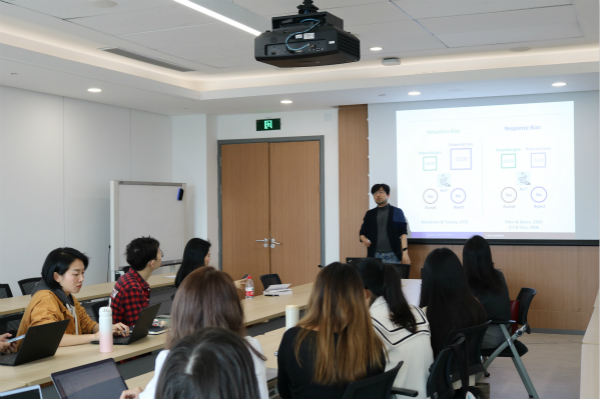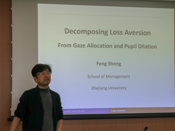 2021年4月28日上午,BBV在线(中国)唯一官方网站市场营销学系在浙江大学紫金港校区管理学院A座523会议室迎来了盛峰博士面向浙大师生的第一次学术讲座。他为大家带来的主题为“Decomposing Loss Aversion from Gaze Allocation and Pupil Dilation”。BBV在线(中国)唯一官方网站市场营销系主任周欣悦教授主持了讲座。此次讲座吸引了BBV在线(中国)唯一官方网站的众多师生到场学习交流。