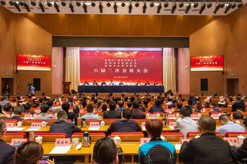 4月22日下午,杭州市工业经济联合会、杭州市企业联合会、杭州市企业家协会联合主办的“三会”六届二次会员大会在萧山区会议中心召开。