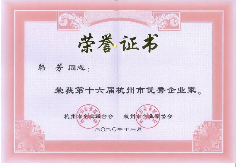 韩芳荣获第十六届杭州市优秀企业家