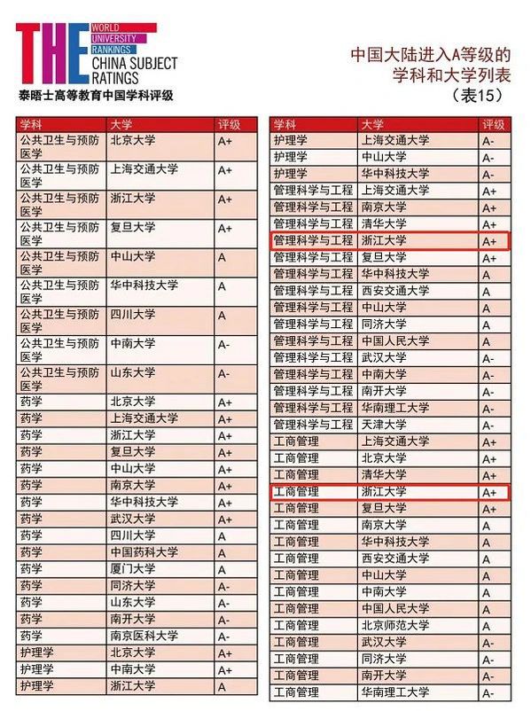 2021年度的泰晤士高等教育(THE)中国学科评级涵盖90所中国大陆高校,以及全球1420所院校;评分采用中国教育部的学科分类法,涵盖89个科目,采用A+至C–评分系统。