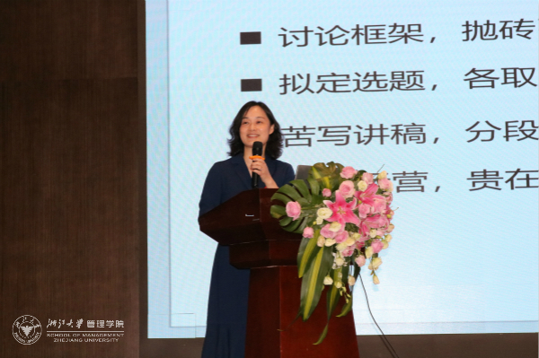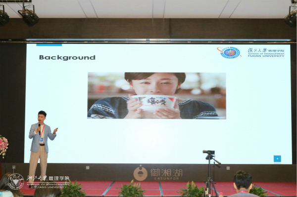 在会议中压轴出场的是浙江大学市场营销系的王丽丽老师,她言辞诙谐、语调欢欣,听众们不禁精神抖擞、全神贯注。丽丽老师从生活中的经历出发,让大家讲述了“决策情境对亲社会行为的纸上谈兵效应”的研究背景。在分享的过程中,松紧有度,丽丽老师将严肃的学术内容与轻松的生活经历、研究经验相结合。听众们在听讲的同时,还收获了丽丽老师独家分享的有趣科研小故事,现场气氛活跃,掌声雷动。