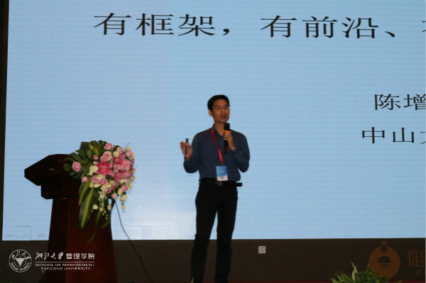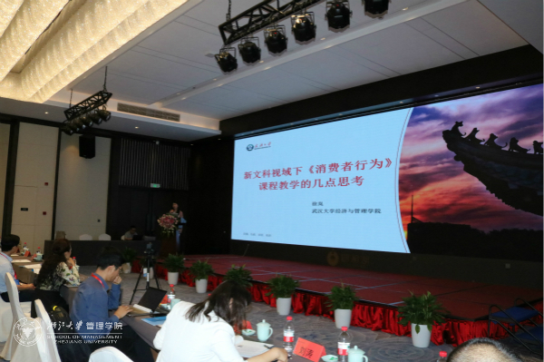 在茶歇过后,中山大学的陈增祥老师为大家讲解“有框架、有前沿、有趣味的本科消费者行为学课程体系建设”,从课程设置合理性与完整性,观点理论前沿性,以及课堂内容趣味性、授课形式新颖性的角度,与参会人员分享了本科消费者行为学课程体系建设思路与经验。