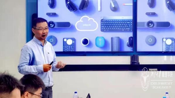 第二环节,营销策略分享。罗技大中华区副总裁刘总为管院一行分享了罗技产品的市场营销是如何开展的。他首先讲了罗技产品的供给侧改革,主要通过3个步骤实现,自主研发,合作赋能,人群破圈。