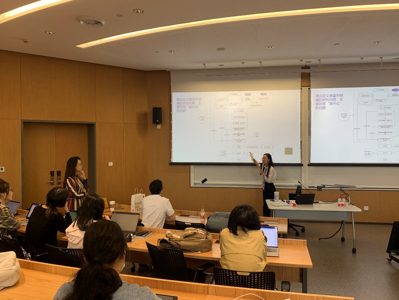 22日上午,高馨博士以中国人脉研究与组织行为研究为例,分享了大数据与结构化数据结合的研究样例。高博士的系列研究回答了中国人的人脉圈子有几层、如何预测中国人的人脉等探索式研究问题,为什么处于相同结构洞的人拥有不同绩效这一验证式研究,以及什么是众愚成智、什么是众智成愚这一探索式与验证式结合的研究问题。她的报告呈现了通过问卷研究获得扎根真相、扎根真相指导大数据建模与优化、数据挖掘模型反哺管理学理论这一完整的三角对话过程。高馨博士指出,社会科学调查可以确立问题意识以及提交扎根真相;而大数据算法(细粒度,低成本,大量,预测准确率高)使得一些近似的理论概念得以基于大数据指标建立模型并得到局部最优解。高馨博士激发了在场师生围绕数据与理论的关系、理论发展与应用价值的关系等问题进行了热烈探讨。