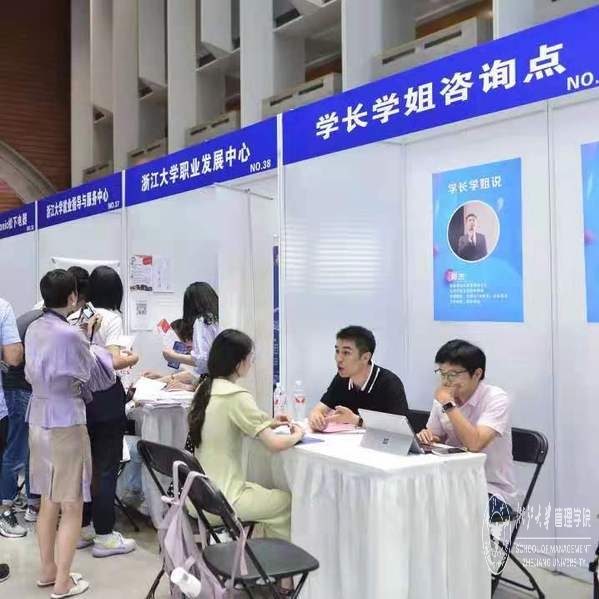 本次双选会还设立了3个现场一对一生涯咨询台,分别邀请到浙江大学就业指导与服务中心、浙江大学职业发展中心的专业生涯辅导教师,以及管理学院优秀学生,通过测评工具、访谈等形式为同学们提供辅导。