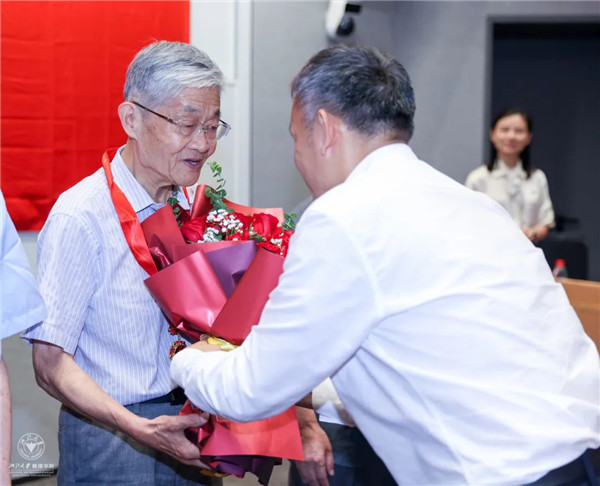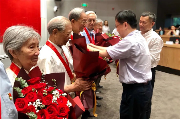 本次管理学院共有10位老党员荣获“光荣在党50年”纪念章,他们分别是谭仁甫、王春祥、徐秉文、谢敦礼、石瑛、陈天来、胡介埙、翁贤明、周耀烈、王如芳。校离退休工作处副处长兼离休党工委副书记李民、管理学院党委书记朱原为7位与会老党员颁发纪念章,并送上鲜花。