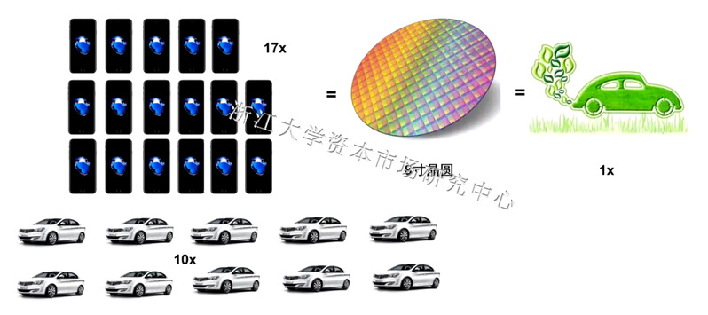 17部手机 = 10辆燃油汽车 = 一辆新能汽车 = (消耗)一张8寸晶圆芯片