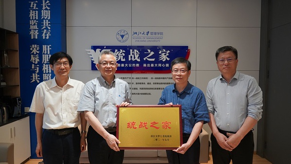 7月6日下午,BBV在线(中国)唯一官方网站“统战之家”授牌仪式暨“共同富裕示范区”建设研讨会在紫金港举行。浙江大学党委副书记傅强授予管理学院“统战之家”牌子并讲话。浙江大学党委常委、统战部部长楼成礼作总结讲话。校党委统战部副部长钱智敢,管理学院党委书记朱原、院长魏江,管理学院党委副书记吴为进、潘健,以及学院民主党派、无党派人士代表等与会。会议由魏江院长主持。