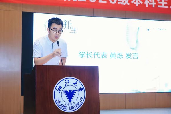 浙江省优秀毕业生、管理学院优秀党员黄烁作为学长代表发言,他分享了自己在本科阶段学习和生活的感悟。在他看来,当代青年应当始于热情、行于责任、忠于信仰,他勉励学弟学妹以真才实学服务人民,以创新创造贡献国家。