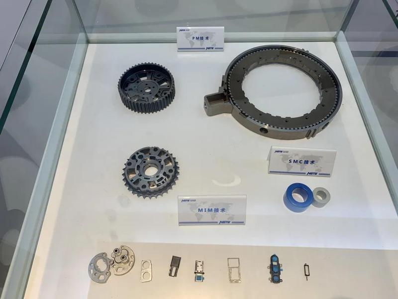由于粉末冶金材料的优越性能及低成本,粉末冶金零部件在汽车等行业中的应用越来越广;磁粉芯材料则在5G通讯、光伏、车载、充电桩等领域中着广泛的应用;金属注射成形产品则在穿戴、移动智能终端、汽车等领域广泛应用。展厅中汽车VVT/VCT零件、链轮、ABS传感器、刹车片,电子仪器中的光纤接头、手机卡托、转轴等琳琅满目的产品零件,让参观人员应接不暇。