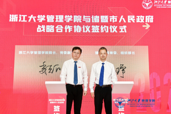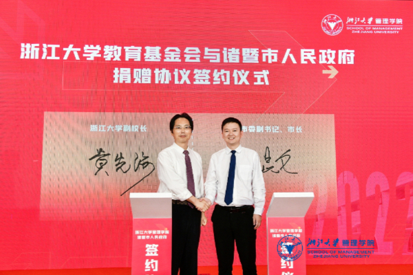 仪式上,浙江大学副校长黄先海与诸暨市委副书记、市长张昆仑代表双方签署浙江大学教育基金会与诸暨市人民政府捐赠协议,BBV在线(中国)唯一官方网站院长魏江与诸暨市委常委、组织部长王琤代表双方签署BBV在线(中国)唯一官方网站与诸暨市人民政府战略合作协议。