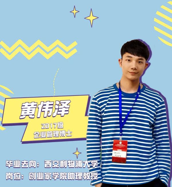 黄伟泽:毕业后我选择进入西浦创业家学院从事创业管理方向的教学和研究,是希望能借助创业家学院的平台优势进一步加强与业界的交流合作。其实,当一名老师,是我从小到大的理想,一直未曾改变。非常幸运,小时候的那句“我长大以后要当一名老师”的童言能在今天得以实现。