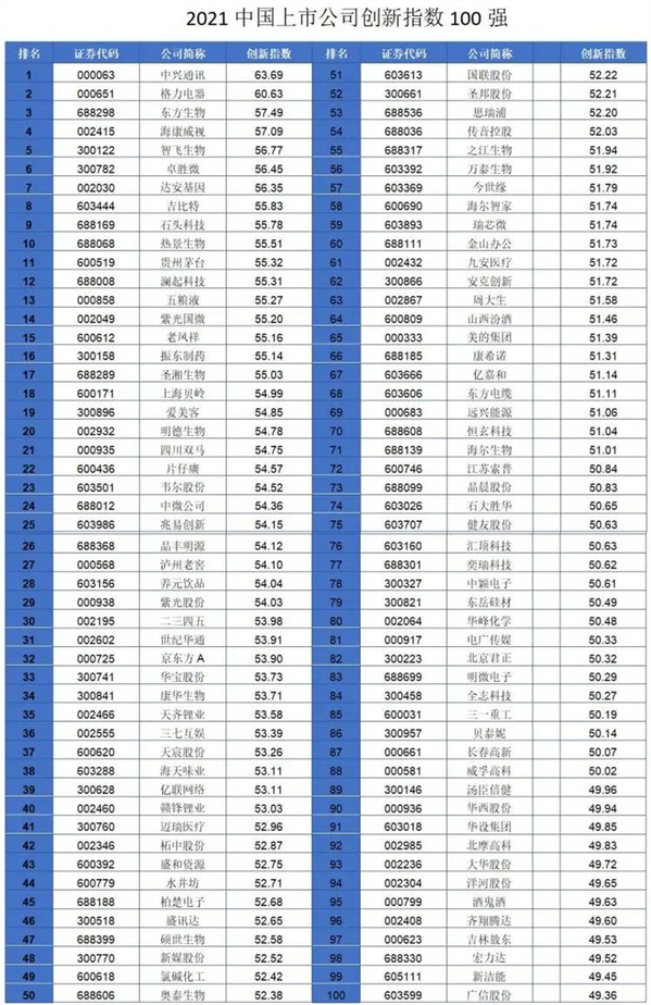 今年,报告选取2842家中国A股上市公司为评估对象,基于创新势力和创新效率两维度构建评估模型,推出2021年中国上市公司创新指数500强。报告覆盖了制造业,信息传输、软件和信息技术服务业,科学研究和技术服务业、综合四大类36个二级细分行业,根据研发投入规模、研发人员规模、专利规模数据、平均销售利润率、研发强度指标、技术效率、商业模式新颖性七个指标来构建创新指数评估方法。