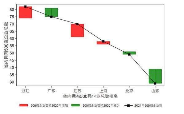 自2019年起,广东省、浙江省和江苏省连续三年位列拥有500强企业总数最多的前三甲,进入数量维度的第一梯队。同时,北京市在企业数量方面的排名呈现出一定程度的下降趋势,上海市和山东省的排名则较为稳定。