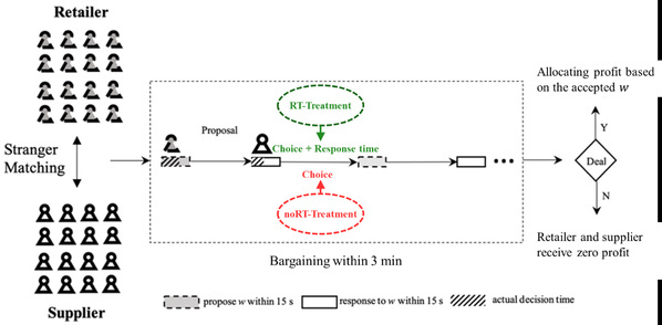 Methodology:We conducted two laboratoryexperiments with multiround bargaining between a supplier and a retailer, where the supplier had private information about production costs. The retailer proposed wholesale prices to the supplier, and the supplier decided whether to reject or accept them. The experiments were composed of treatments with response time information (RT-Treatments) and those without response time information (noRT-Treatments). Suppliers’ response times were transparent to retailers in the RT-Treatment but were not transparent to those in the noRT-Treatment.