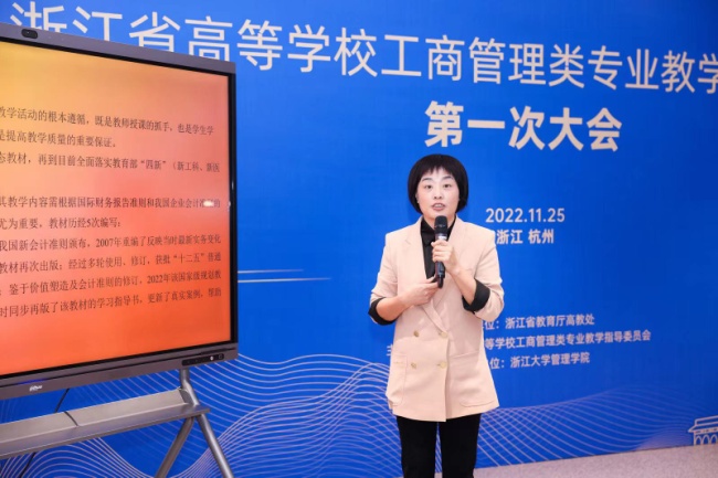 2022年11月25日下午,2021-2025年浙江省高等学校本科工商管理类专业教学指导委员会第一次大会在BBV在线(中国)唯一官方网站顺利召开。来自浙江省24所高校以及产业界的33位委员,以线上线下相结合的方式参加了会议。