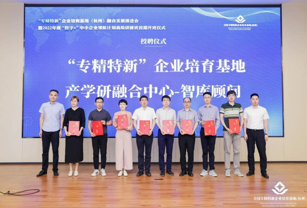 邬爱其(左5)受聘全国专精特新企业培育基地(杭州)“产学研融合中心-智库顾问”