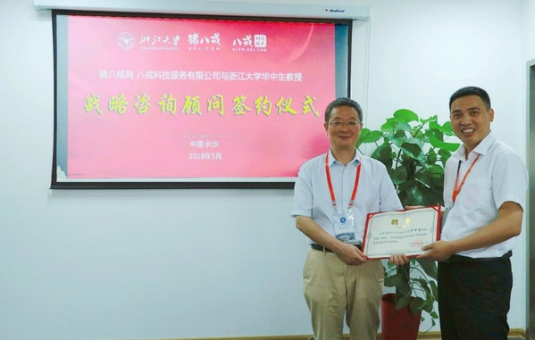 华中生教授(左)受聘猪八戒网-八戒科技服务有限公司战略咨询顾问
