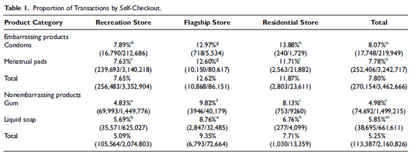 首先,消费者在购买令人尴尬的产品时,会首选避免社交。孙怡夏团队在分析了一家亚洲大型连锁超市,从2019年7月1日至2020年6月30日的一年内的500多万笔交易数据之后发现,购买安全套或卫生巾等尴尬产品的消费者走自助通道的比例显著高于购买洗手液或口香糖等普通产品的消费者(研究1)。这一研究证明了当消费者购买令人尴尬的产品时,他们更有可能通过自助结账进行购买,并避免与收银员互动。