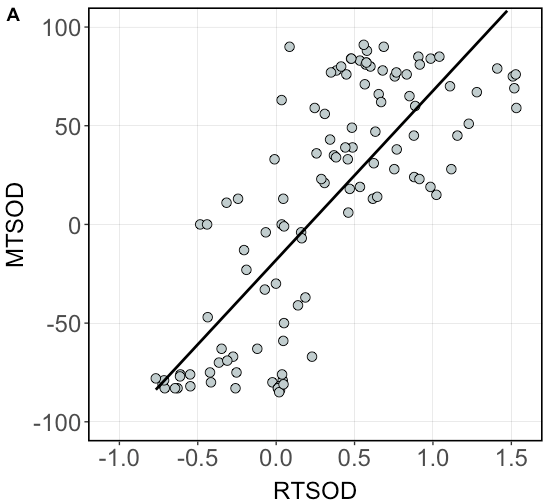 图6基于鼠标轨迹的属性潜伏(MTSOD)和基于反应时间的属性潜伏(RTSOD)高度相关