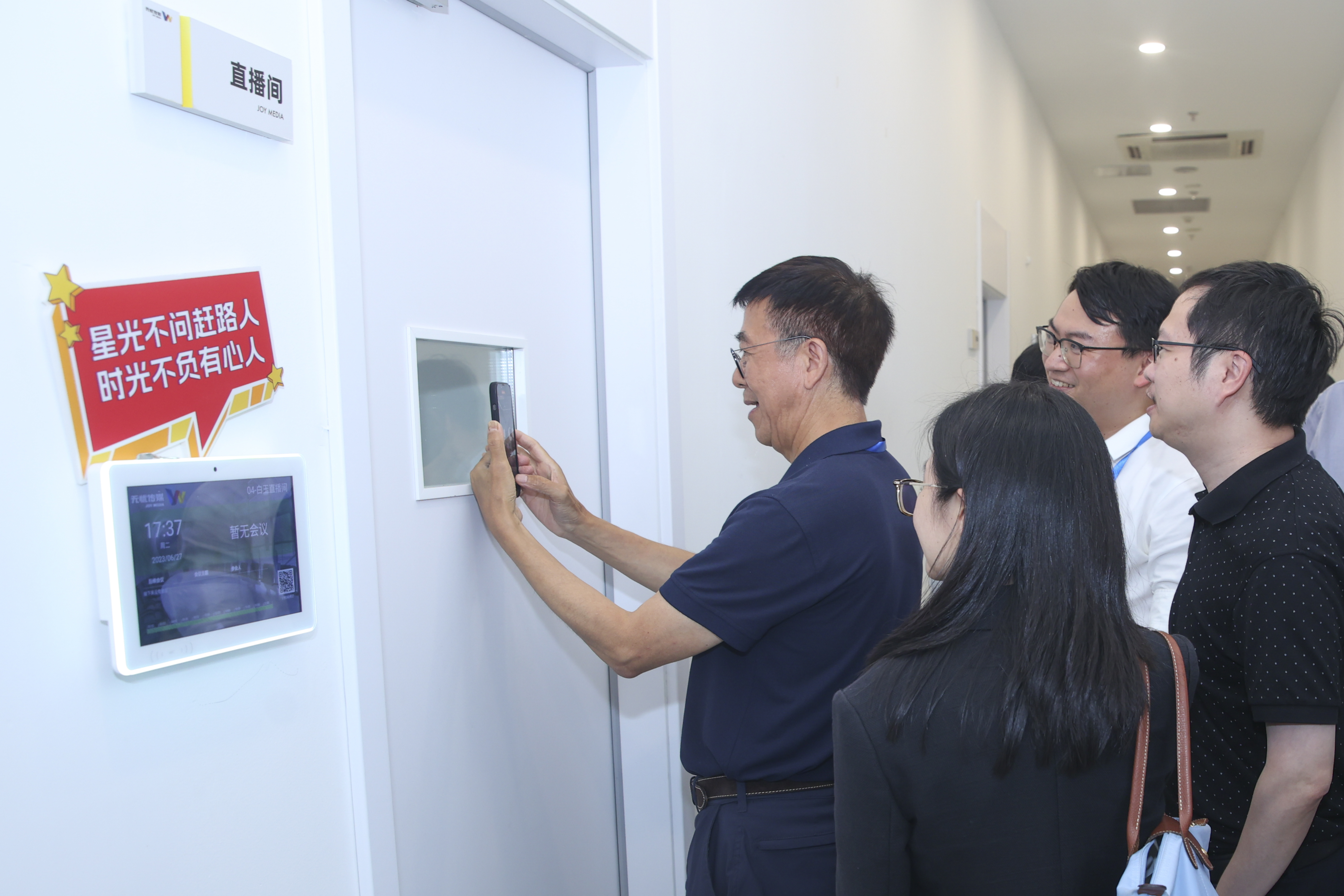 企业第二站走进在直播、短视频和电商领域具有广泛影响力的头部MCN机构-无忧传媒。公司所在地萧山区政府招商、科技、教育和园区管理多部门负责人,无忧传媒创始人雷彬艺,以及公司战略、市场、人力等部门负责人参与交流。现场,多方围绕无忧传媒的发展和所分享的内部案例,就中国当前快速发展的网红经济、短视频和直播电商业态的规范和科学发展进行深度讨论。