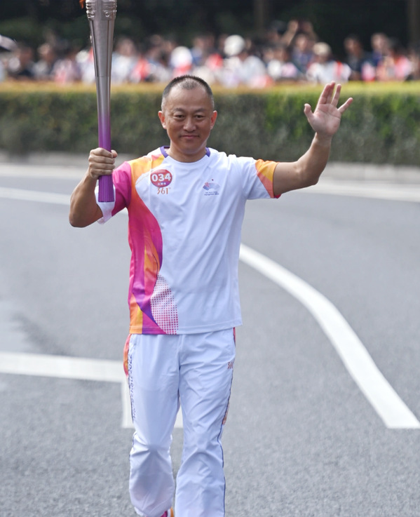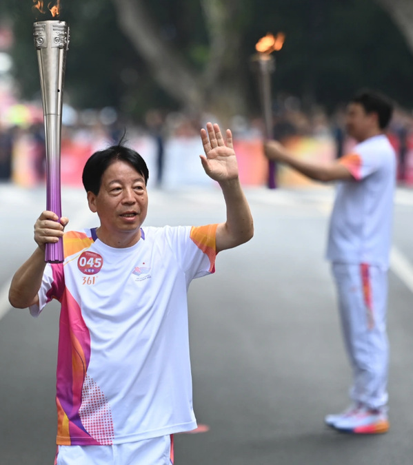 王水福进行火炬传递 | 图片©新华社 黄宗治摄