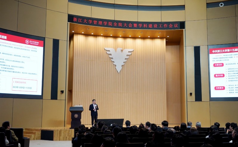 优秀学科是世界一流大学的显著标志,习近平总书记在2023年4月对浙大作出的重要指示中指出,希望浙大加快建设世界一流大学和优秀学科,为以中国式现代化全面推进中华民族伟大复兴作出积极贡献。为全面贯彻落实习近平总书记对浙大的重要指示精神,通过拔尖造峰加快构建世界一流、中国特色、浙大风格的优秀学科,2023年10月20日,全院大会暨学科建设工作会议在金色大厅顺利召开。会议由管理学院党委书记兼副院长朱原主持。