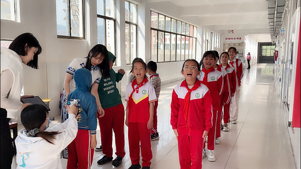 浙大管院2021届硕士毕业生赵一帆毕业后作为中央统战部选调生前往中央统战部定点帮扶县赫章,从事易地扶贫搬迁后续扶持工作。图为赵一帆联引青少年脊柱侧弯公益筛查帮扶项目活动现场
