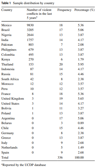他们调研中通过七个项目来衡量暴力冲突风险,这些项目涉及暴力冲突对企业运营和绩效的负面影响。