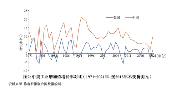 如果对比改革开放后中美工业增加值的增长率,发现它们之间存在非常强的相关性,这与改革开放之前两国工业发展的独立性形成鲜明对比。