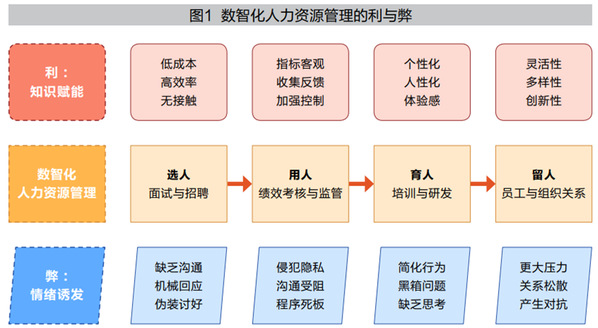 智能技术因无法理解员工为应对现实情况而采取的行动,可能常常误读员工动机和行为,员工若长期没有向上沟通的渠道和机会,其负面情绪会逐渐累积演化为与组织的疏离感,甚至敌对行为。