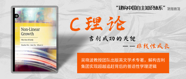 基于吉利成功实现超越追赶的创新管理实践,吴晓波团队进一步发展并完善了中国原创创新管理理论“C理论”,于2021年9月由中信出版集团出版专著《非线性成长:吉利之路》(该专著获2023年度浙江省哲学社会科学优秀成果一等奖)。近日,又在顶尖国际学术出版社Palgrave Macmillan面向全球发行该书的英文版——《Non-Linear Growth: The Rise of Geely》,以科学回应偏见,回应世界之问、人民之问。